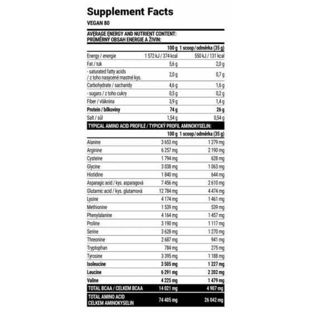 Spezifikationen Extrifit Vegan 80 2000 g EXTRIFIT